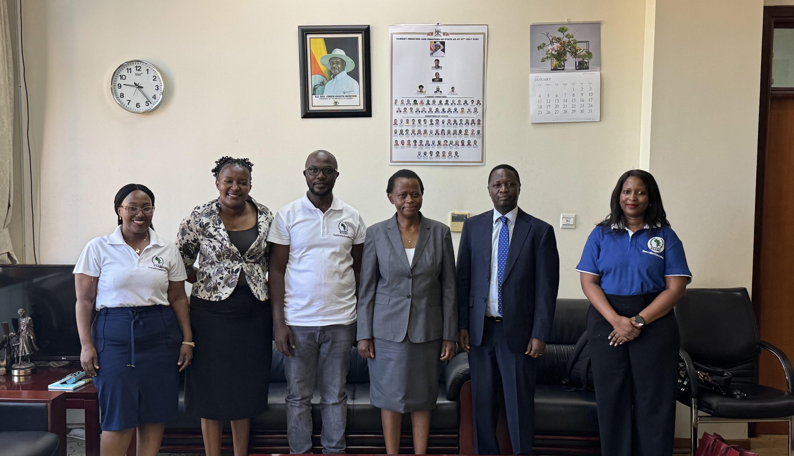 On Friday, 30th January 2026, the Director General of the Eastern and Southern African Management Institute (ESAMI) paid a courtesy visit to the Head of Public Service and Secretary to Cabinet, underscoring continued collaboration between the two institutions.